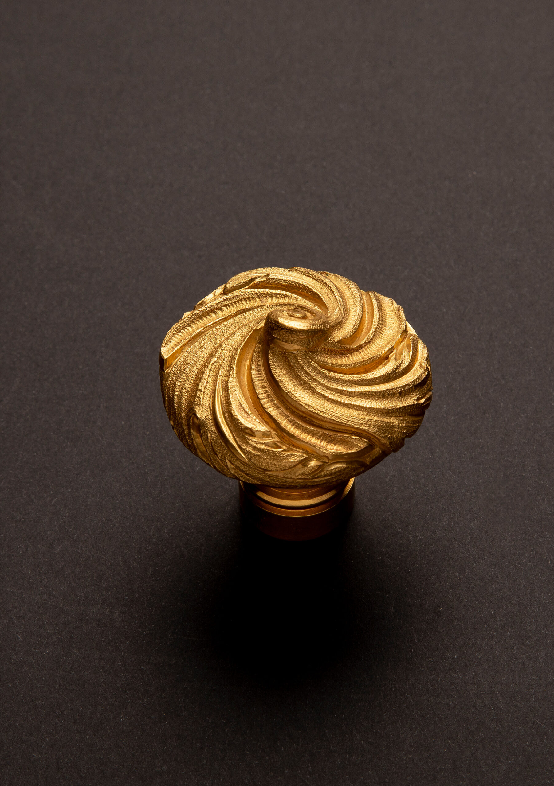 Bouton de placard de style Louis XV, torsadé d’une feuille d’acanthe finement ciselée.